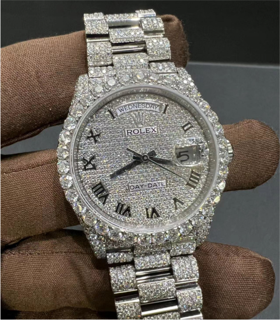 Each moissanite in our moissanite watches is hand-set, not made by cheap machines.